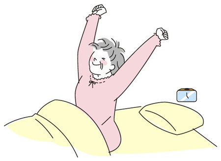 年齢を重ねると、深い睡眠を得にくくなるようです。これは、メラトニン(脳内伝達物資でホルモンの一種)の働きとの関係が有力視されていて、年齢とともに分泌量が減るためです。